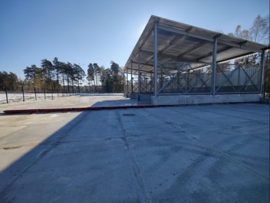 На площадке построены: контрольно-пропускной пункт, разворотная зона для мусоровозов, зоны складирования крупногабаритных отходов и работы погрузчика, защитный навес для складирования ТКО. Организована система сбора фильтрата и поверхностного стока. При въезде на площадку обустроена зона с щебеночным покрытием.