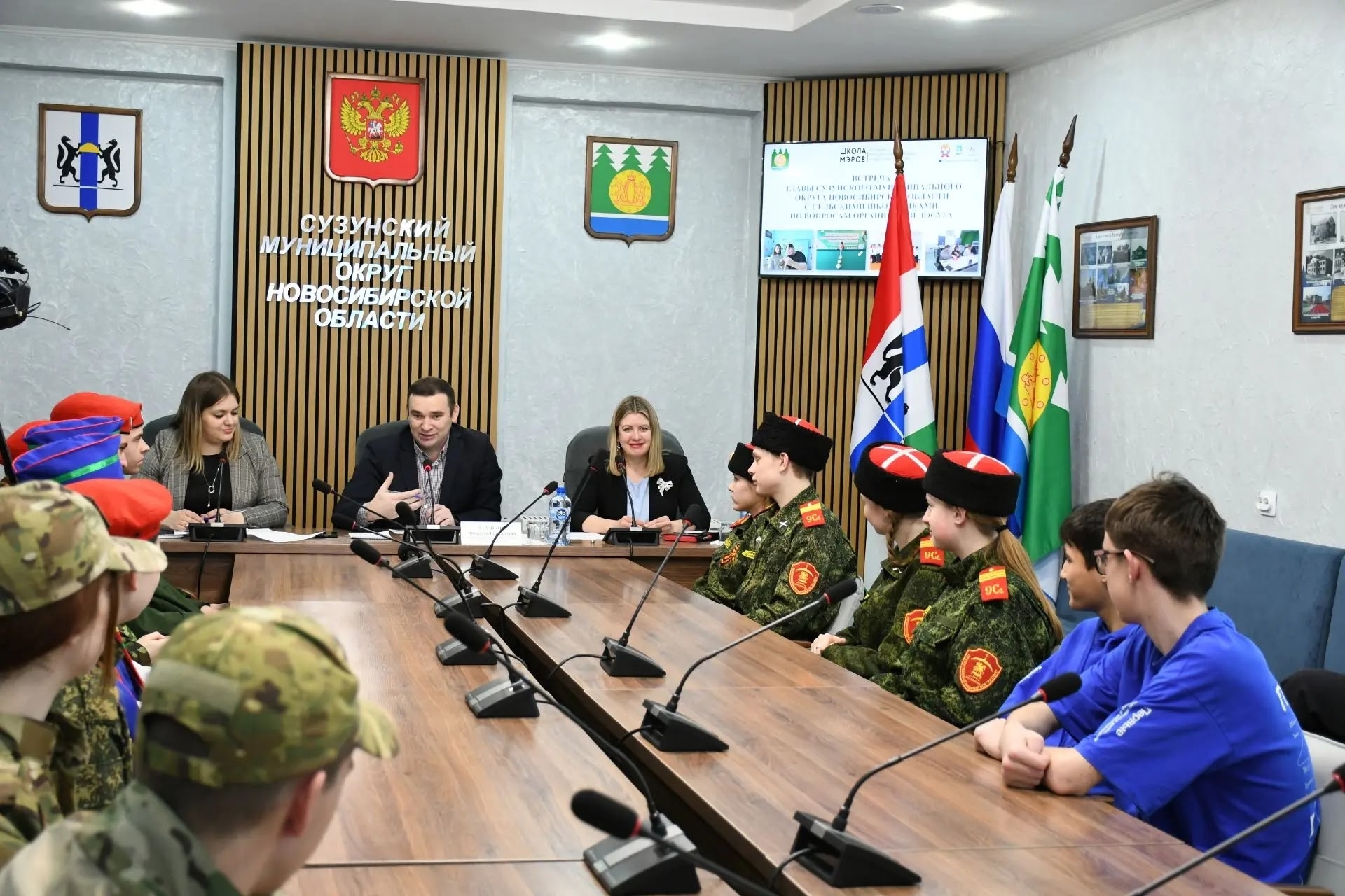 Встреча Главы Сузунского муниципального округа Вячеслава Васильевича Горшкова с представителями детских и молодёжных объединений состоялась в администрации 19 марта. Среди участников встречи были активисты «Дома Юнармии», Движения Первых, военно‑патриотических клубов и юнармейских отрядов.