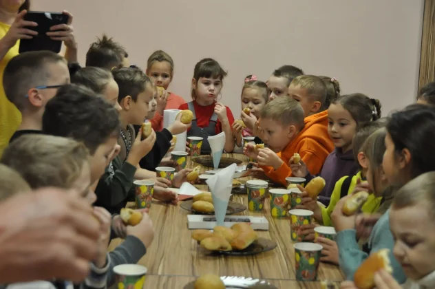 А потом все получили возможность попробовать свежеиспечённые булочки и пирожки. Ребятишки с удовольствием уплетали угощение, а Владимир Крестьянович продолжал рассказывать им про работу мельника Евгения Чмарина. Кстати, на мельнице в «Александровке» он трудится один, все процессы здесь автоматизированы, поэтому Евгений Александрович со всем хозяйством легко справляется.