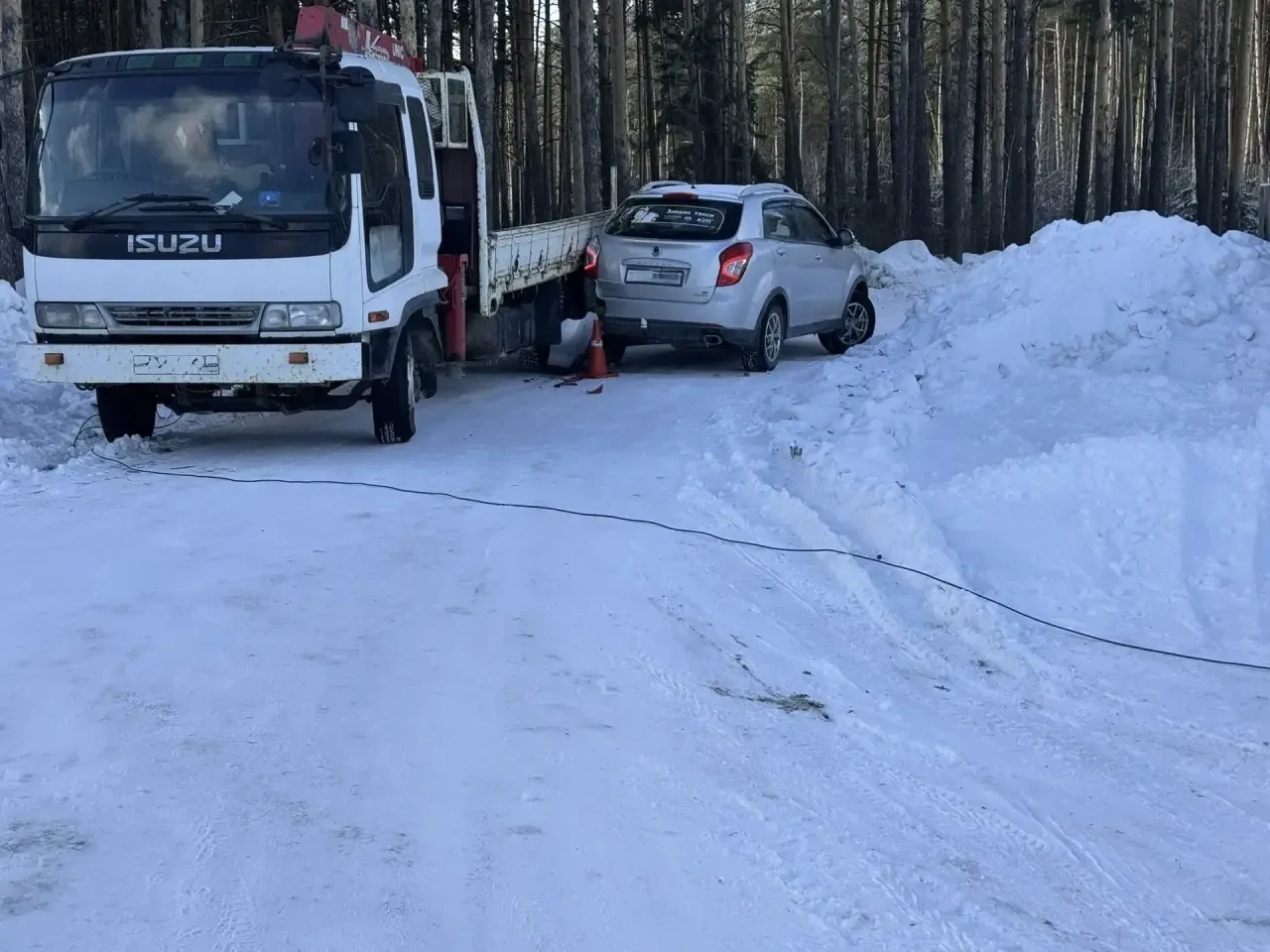 Сегодня, 20 февраля, на улице Есенина в Сузуне произошло дорожно-транспортное происшествие с участием двух автомобилей: грузового автомобиля марки «Исузу» и легкового автомобиля «СсангЙонг Актион».