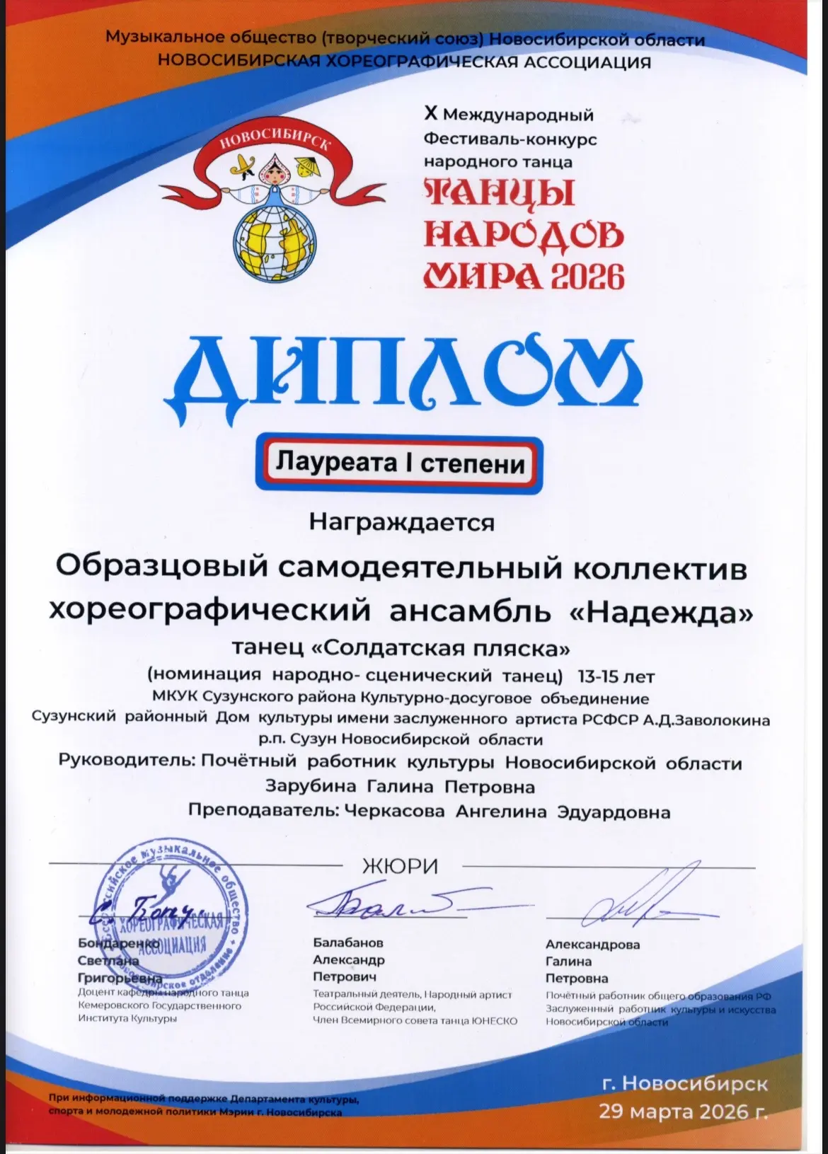 29 марта 2026 года ансамбль «Надежда» принял участие сразу в двух конкурсах и получил такие награды!