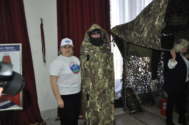 На втором этаже районного Дома культуры была организована выставка проектов в сфере военно-патриотического воспитания молодёжи в Сузунском муниципальном округе. О своей работе рассказали Центр патриотического воспитания, образовательные организации. Волонтёрское движение «Zа/Сибирь своих не бросает» представило продукцию, которую изготавливают неравнодушные жители округа для поддержки бойцов на СВО. Здесь были и сухие супы, и антидроновые одеяла, и тёплое бельё, и письма, которые пишут школьники для солдат. Каждый выставочные павильон был инсценирован в виде блиндажа из маскировочных сетей.