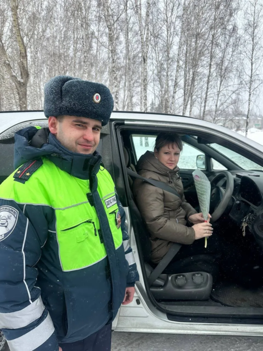 Инспекторы остановили автомобили, управляемые женщинами, и вручили каждой тюльпаны. Вместе с цветами дамы получили искренние поздравления с приближающимся праздником, пожелания безопасного вождения и доброго пути.