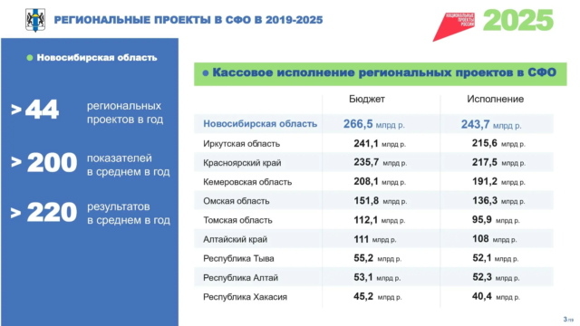 Стремительные темпы развития региона подтверждают, в том числе, значительно увеличившееся количество депутатских наказов – в программе наказов депутатов седьмого созыва уже на стадии её разработки мероприятий было почти в три раза больше, чем в предыдущую пятилетку. Это серьёзные объёмы работы в здравоохранении, образовании, дорожно-благоустроительном комплексе, жилищно-коммунальном хозяйстве. А что касается реализации нацпроектов, Новосибирская область практически каждый год брала на себя гораздо больше обязательств, чем другие сибирские регионы – по количеству объектов и мероприятий, по объёмам финансирования.
