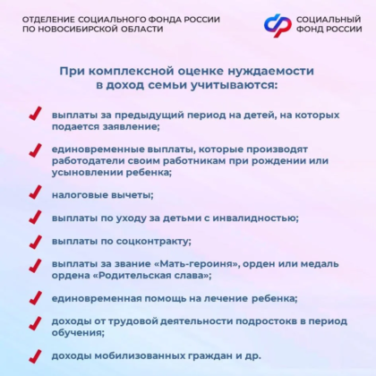 Единое пособие назначается семьям, в которых среднедушевой доход не превышает региональный прожиточный минимум. В Новосибирской области этот «порог» в 2026 году составляет 18 560 руб.