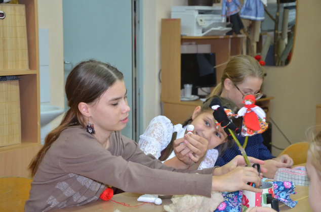 Татьяна Исупова, педагог дополнительного образования, даёт детям возможность окунуться в удивительный мир народного творчества на своих занятиях по изготовлению народных кукол и плетению из бисера