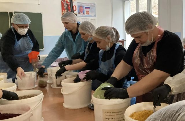 Вчера, 23 октября, в аграрном колледже завершилась фасовка очередной партии сухих супов. 2200 порций, в том числе 300 штурмовых пайков в ближайшее время отправятся бойцам в зону СВО.
