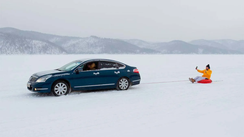 Опасность катания на тюбингах, прикреплённых к автомобилю
