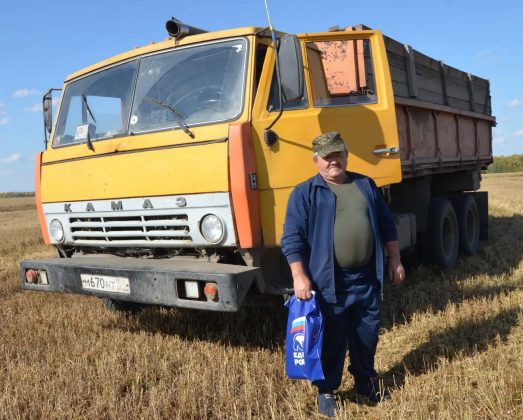 Водитель Сергей Бедненко за рулём с 1972 года. В детстве жил в городе, переехал в Шипуново двадцать пять лет назад. Сразу устроился работать на сельхозпредприятие. «Поначалу молотил на комбайне, а потом перебрался на КамАЗ возить зерно. Так и привык к этому делу. Хоть уже и на пенсии, выхожу помочь ребятам с уборкой. Пока здоровье есть, почему бы не поработать? Сейчас зерно вожу на элеватор», — рассказывает Сергей Григорьевич.
