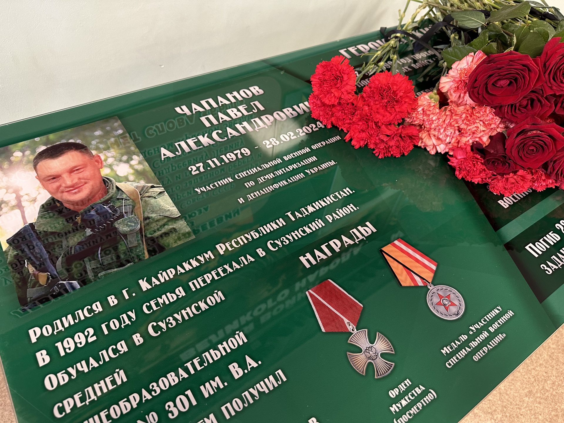 Память увековечена о Павле Александровиче Чапанове — выпускнике школы, участнике специальной военной операции — отдавшем жизнь при выполнении воинского долга. За проявленный героизм он награждён орденом Мужества и медалью «Участник специальной военной операции».