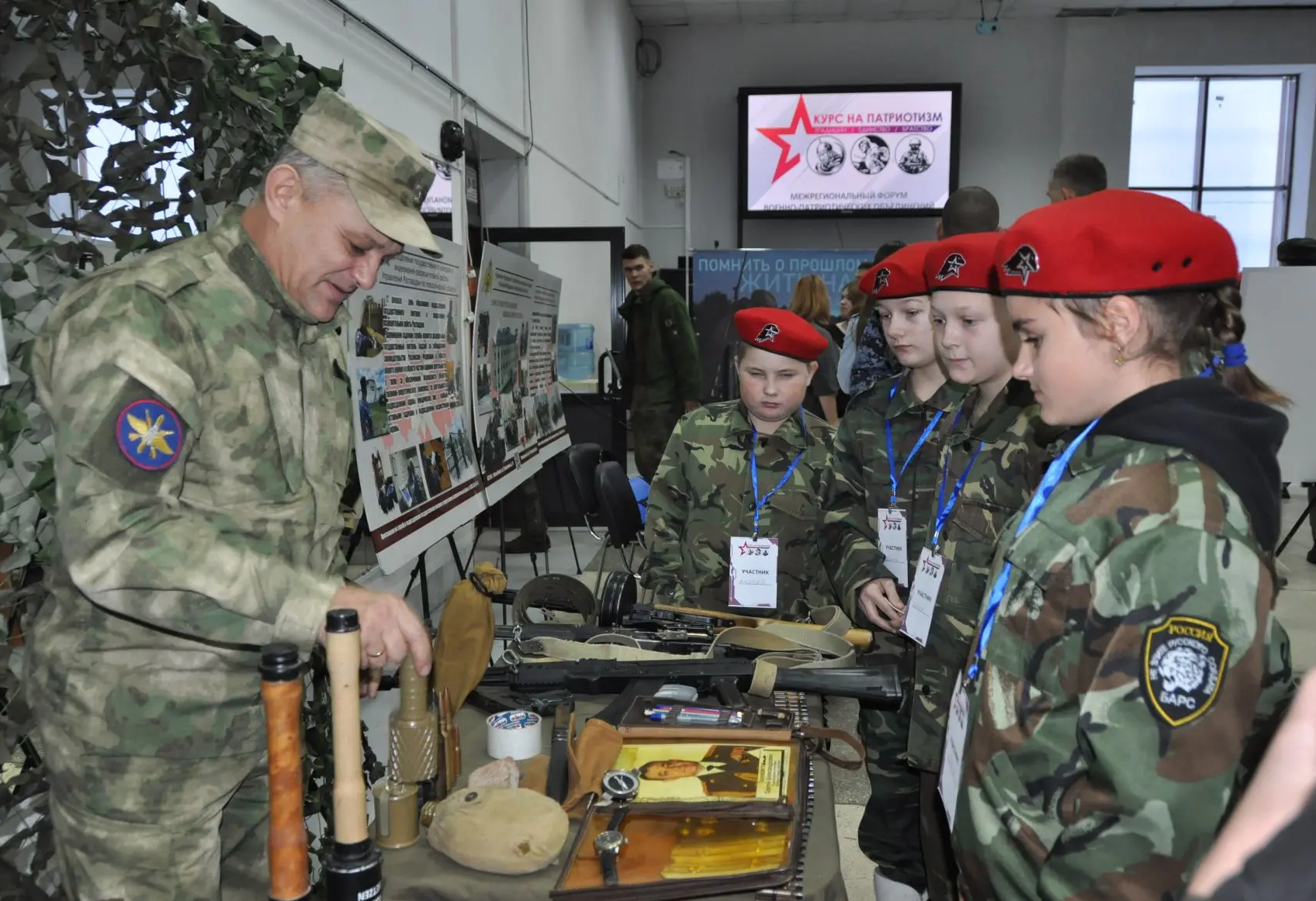 Здесь было представлено и современное военное снаряжение, которым пользуются в настоящее время военнослужащие, и экспонаты времён Великой Отечественной, Афганской и Чеченской войн. Большой интерес среди школьников вызвало оружие, которое они могли потрогать и сфотографироваться на память. Таким образом, дети могли примерить элементы экипировки и почувствовать себя частью современных военных формирований.