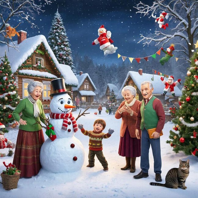Каждый год наша семья отправляется в деревню к бабушке и дедушке на новогодние праздники.