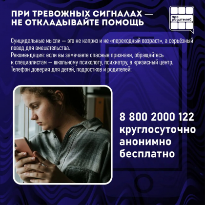 Каждый родитель может сыграть ключевую роль в предотвращении трагедии. Часто дети не говорят прямо: они отстраняются, замыкаются, подают тревожные сигналы через поведение. И именно внимательный взрослый рядом способен заметить то, что не увидит никто другой.
