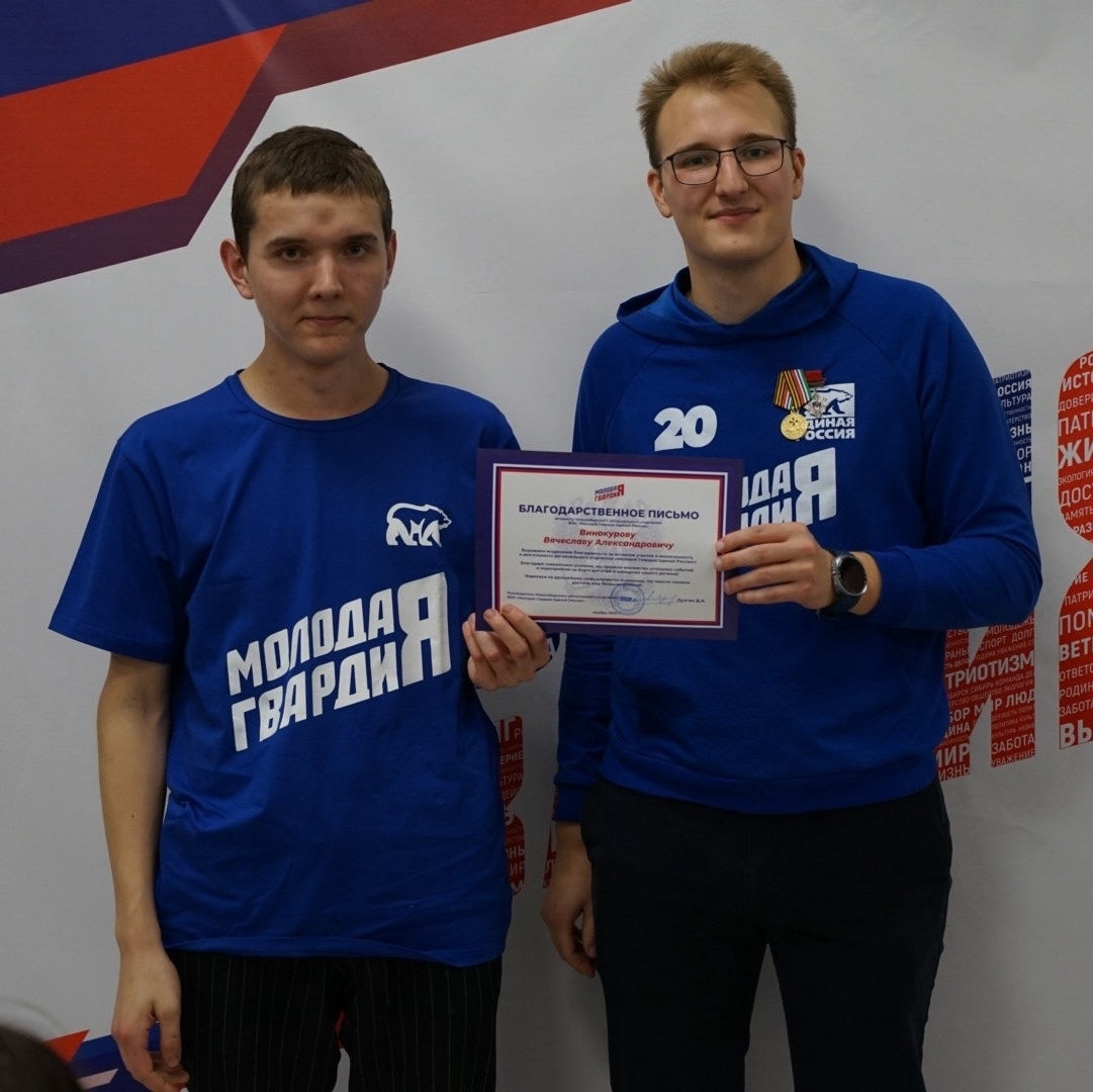 Активисты Сузунского местного отделения, Винокуров Вячеслав, Головнина Валерия, Глазунова Мария были удостоены благодарственных писем за активное участие и вовлечённость в деятельность регионального отделения «Молодой Гвардии» от руководителя Новосибирского регионального отделения «Молодой Гвардии».