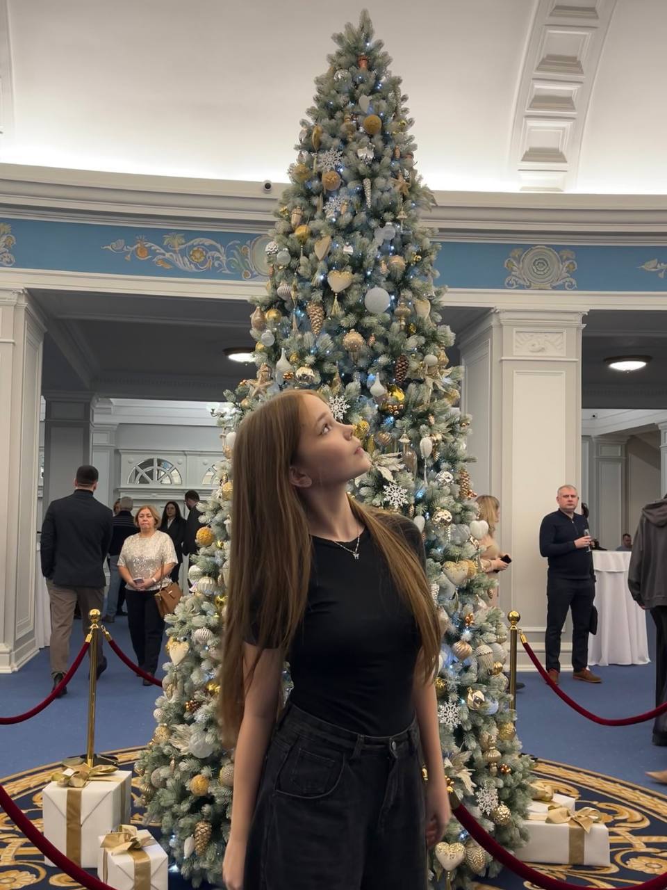 Новосибирский государственный академический театр оперы и балета в эти дни выглядит особенно величественно. Уже с порога нас встретила атмосфера торжества: длинные красные и синие ковровые дорожки, убегающие вверх по массивным лестницам, и нарядные ёлки, расставленные в каждом фойе. Внутри зала захватывает дух: огромная хрустальная люстра под куполом сияет, словно главная звезда на небе, а тяжёлый бархатный занавес скрывает за собой тайны предстоящего вечера. Весь театр был пропитан ожиданием чуда.