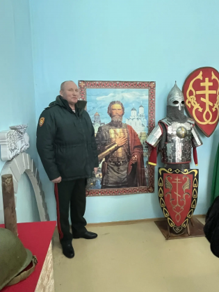 Педагог дополнительного образования Виктор Ротов познакомил гостей с деятельностью военного исторического клуба «Отечество». Он представил вниманию амуницию военных средних веков, а также уменьшенные модели техники времён Великой Отечественной войны.