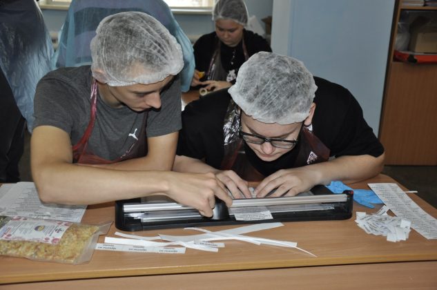 А руководитель «СухБата» Галина Галкина провела мастер-класс по изготовлению этикеток и их наклейки на пакетики. «Каждая деталь важна, сухие супы для бойцов СВО в нашем районе делают с теплом, заботой и любовью. В ходе мастер-классов хотим научить студентов всем операциям приготовления сухих супов», — пояснила Галина Ивановна.