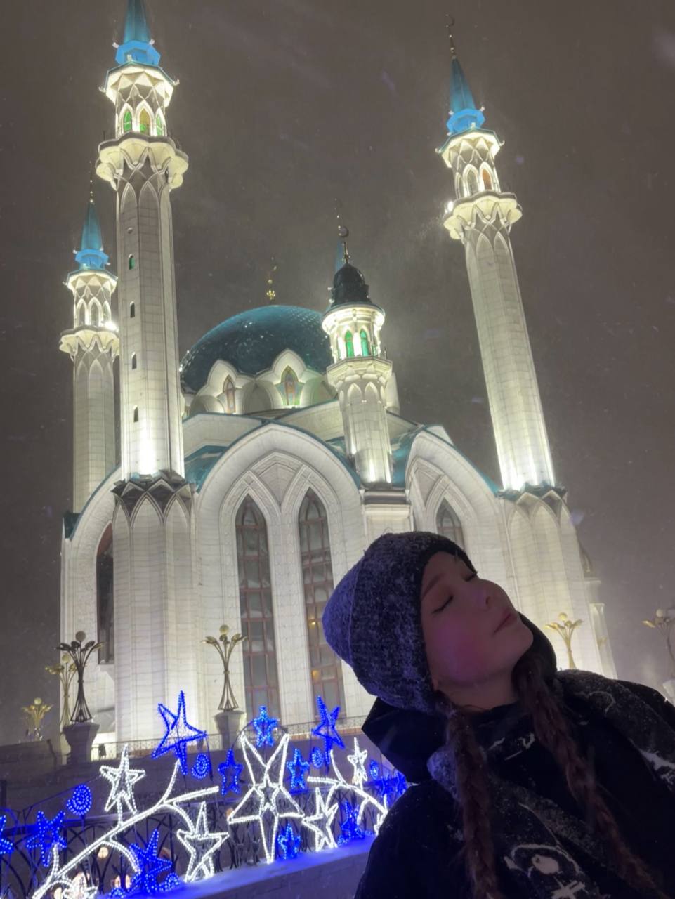 Вечер встретил нас сильным снегопадом. Но разве метель может остановить новосибирцев? Мы отправились в Казанский Кремль! Главное сокровище — мечеть Кул-Шариф. В сумерках она светилась нежным бело-синим светом, а падающий снег создавал вокруг неё магический ореол. Внутри мы поднялись на самый верх, чтобы рассмотреть величественный купол. Рядом замерла в своём вечном наклоне легендарная башня Сююмбике, подсвеченная изумрудным огнём. После музея «Дух Золотой Орды», где мы узнали о великих завоеваниях Чингисхана, зашли в Благовещенский собор. А на Кремлевской площади согреться нам помог традиционный татарский чай. Завершился вечер у Дворца земледельцев и на сказочно украшенной набережной.