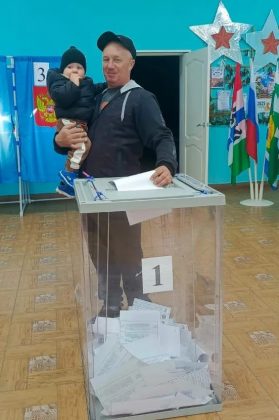 Последний избиратель перед закрытием участка №934 (село Шайдурово) Виктор Жаворонкин с внуком на руках, признаётся: «Решил последним прийти для итоговой процента, нам нужно делать выбор для будущего». Ровно в 20.00 началась работа по подсчёту голосов.